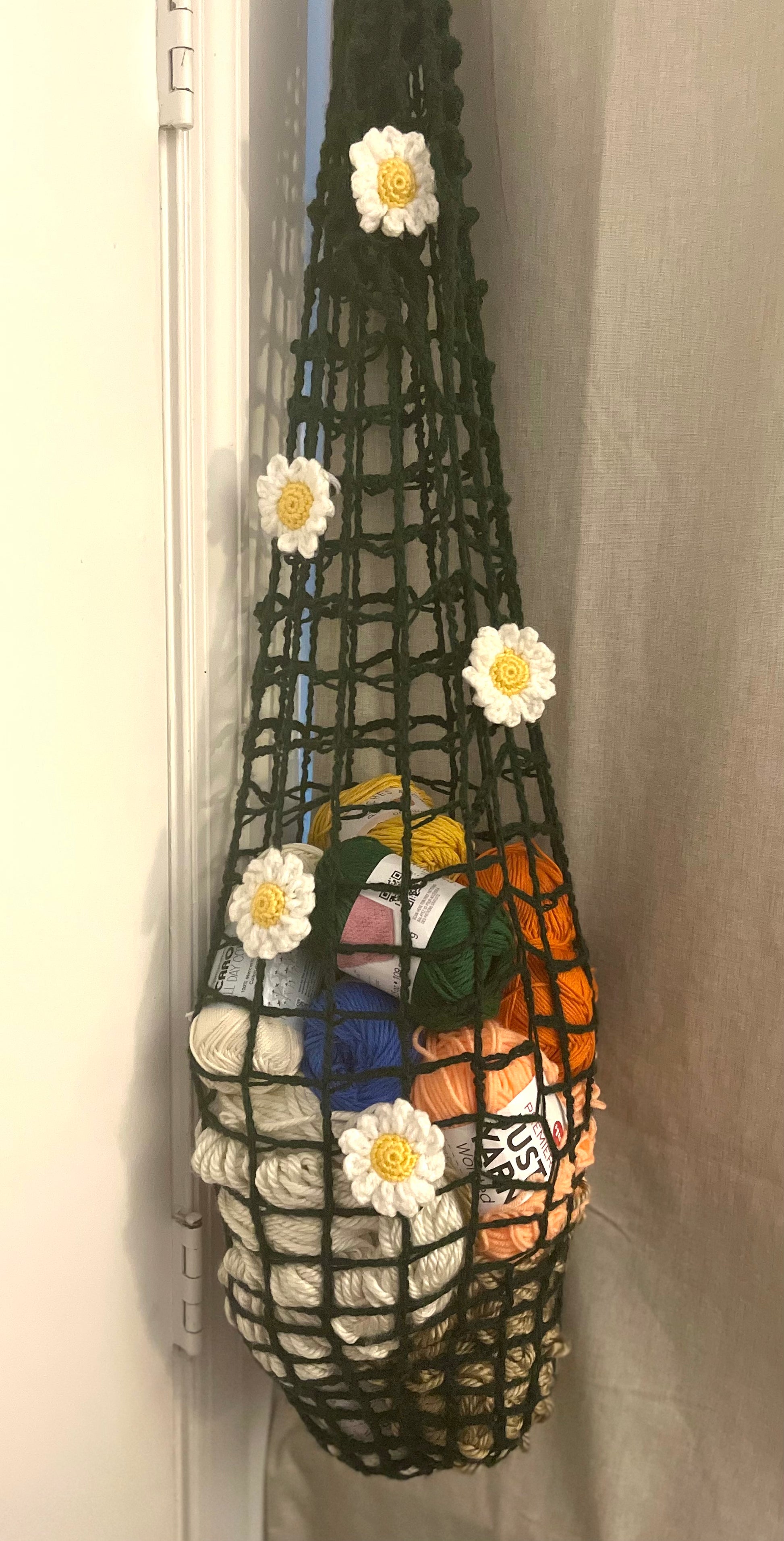 Declutter with handmade charm using this Crochet Mesh Hanging Bag Organizer — perfect for storing yarn, plushies, toys, socks, and more in a cozy, functional way. Handmade with breathable mesh crochet, this organizer is as decorative as it is practical.